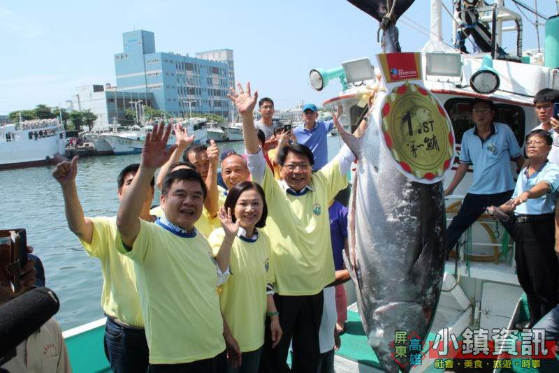圖:東港籍漁船「魚來滿6號」於台灣東南方海域捕獲今年第一鮪(縣府提供)