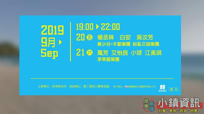 想要追星的讀者千萬不能錯過,九月中旬楊丞琳、白安ANN、吳汶芳、艾怡良、江美琪等眾多知名歌手將在墾丁接連開唱,各位讀者不妨先將行程安排下來,連續兩天一起坐在草地、吹海風、聽音樂。