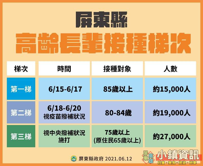 他說,屏東今天再度加零,團隊則再度就長者的疫苗施打做更週全準備,決定第二批以84-80歲為級距,人數約19000人,預定18-20日施打;79-75歲及65歲以上的原住民約27000人,則視中央撥補狀況通知施打日期。