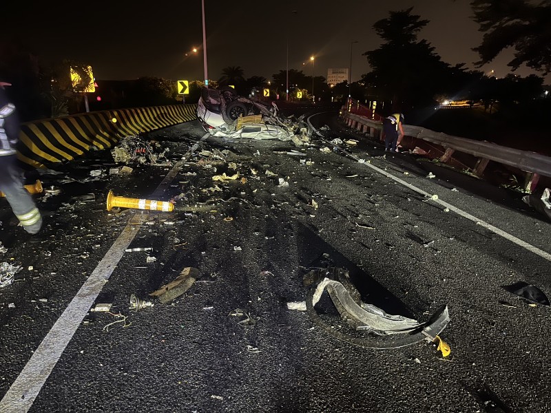 最新消息,屏東九如交流道391公里處靠近南下出口匝道,今(5)日晚間21時40分左右發生一起車禍,一輛自小客車疑似不明原因撞上護欄後翻覆,事故中有一人被拋出車外摔落邊坡,導致30歲謝男當場死亡。