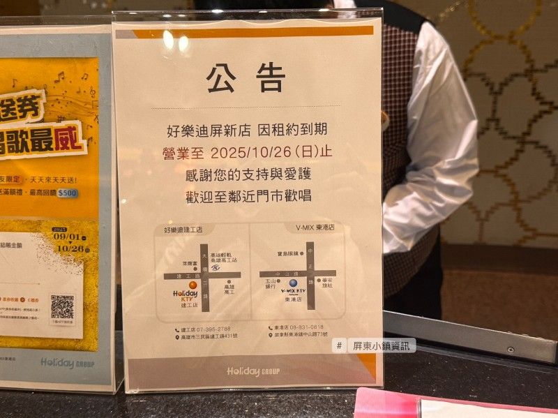 最新消息,屏東市好樂迪屏新店將結束營業,據員工證實,該店因租約到期,營業至2025年10月26日止。