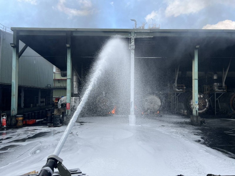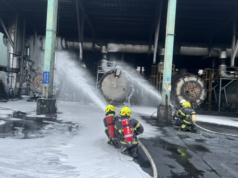 從現場影像可見,橡膠裂解區冒出大量黑煙,烈焰不斷竄出,消防人員站上高處全力灌救,並以泡沫抑制助燃物擴散。整體火勢於11時01分控制撲滅。